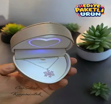 925 Ayar Gümüş Pembe Zirkon Taşlı Manolya Çiçeği Gümüş Kadın Kolye-anneler Günü Özel