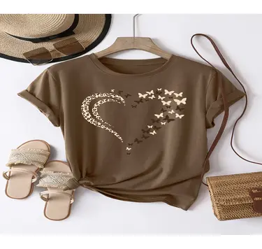 Unisex Leopar Kelebekli Kalp Tasarım Basklı Tshirt