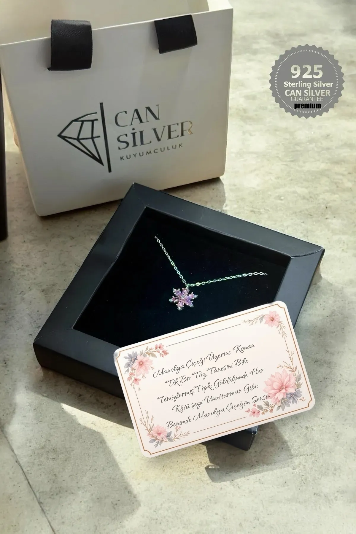 925 Ayar Gümüş Pembe Zirkon Taşlı Manolya Çiçeği Gümüş Kadın Kolye-anneler Günü Özel